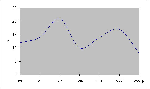 Исследуя частоту поражения электрическим током высокого напряжения мы регистрировал два пика (Рис.2) СЭТВН, в среду (n=21) и субботу (n=17).